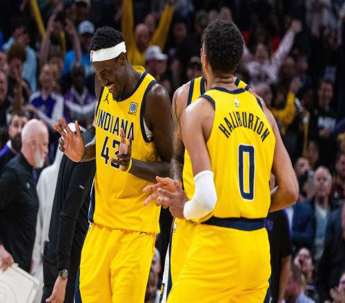 本场比赛,西亚卡姆出战32分钟,23投15中,三分5中3,罚球8中6,狂轰生涯新高的39分(此前最高分37分),外加4板3助1断;哈利伯顿在35分钟的时间里,投篮16中5,三分球10中3,罚球2中1,拿到14分8篮板11助攻2抢断的数据。